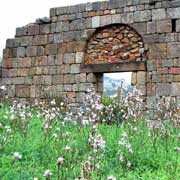 A l’intérieur, on aperçoit les fondements d’un mur. Il s’agit d’un tombeau construit tardivement en utilisant des pierres de l’édifice.