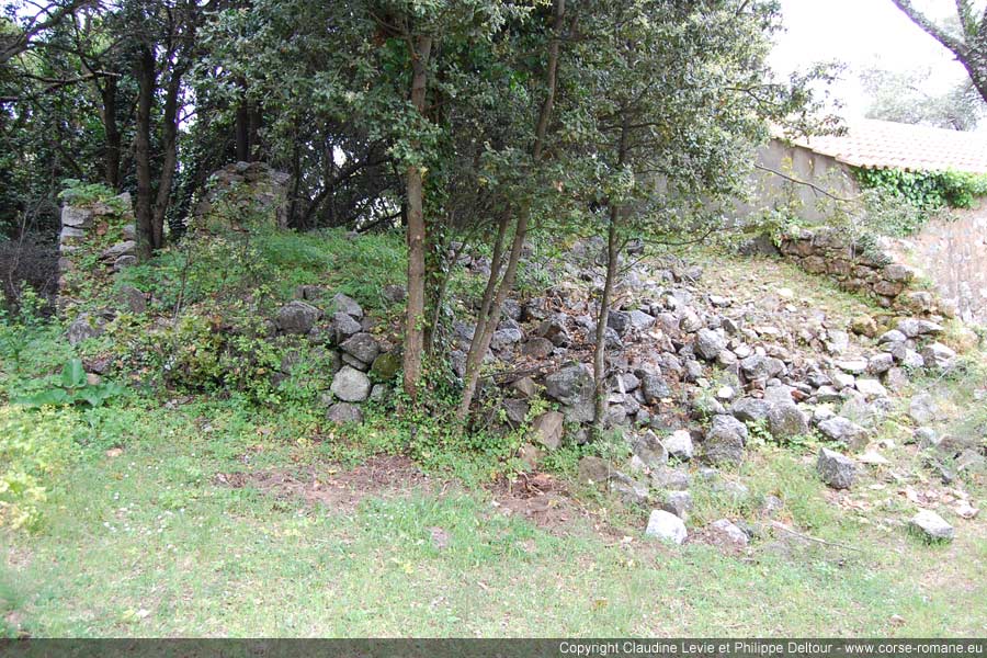 Le mur sud est en partie englobé dans le chevet du nouvel édifice. Il serait intéressant de pouvoir entrer à l’intérieur de celui-ci pour en voir les détails. Une partie du mur nord est plus au moins en place vers l’angle de l’abside mais il a certainement bougé sous la pression des éboulis.