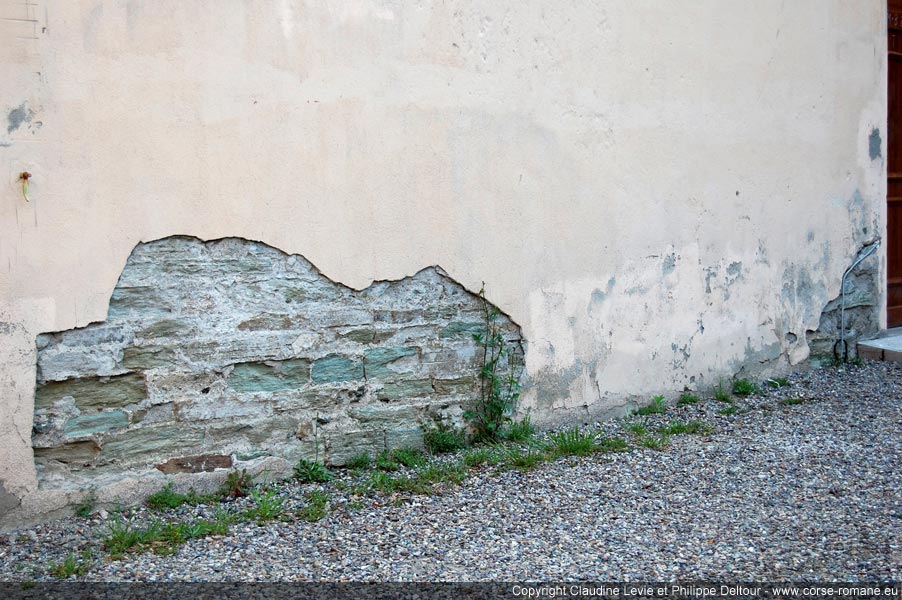 De part et d’autre de la porte, en dessous du linteau, ont pris place deux cartouches rectangulaires. Les murs sont faits de pierres petites, longues et minces provenant de Brando. Cet édifice daterait sans doute de la seconde moitié du 9e siècle selon l’étude de G. Moracchini-Mazel, des 12e-13e siècle selon R. Coroneo.