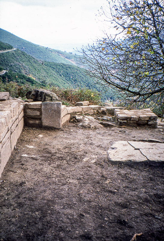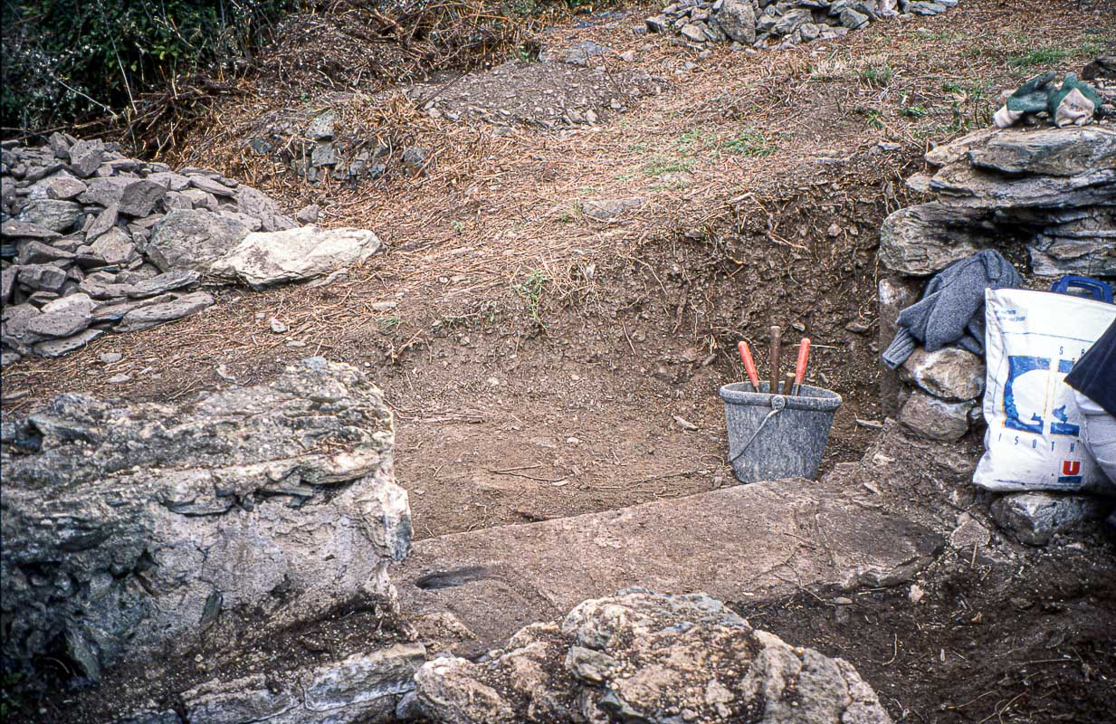 Le terrain étant en pente vers le sud-est, le mur de ce côté repose que plusieurs assises de pierres dont le nombre est adapté à la déclivité pour garantir l’horizontalité.